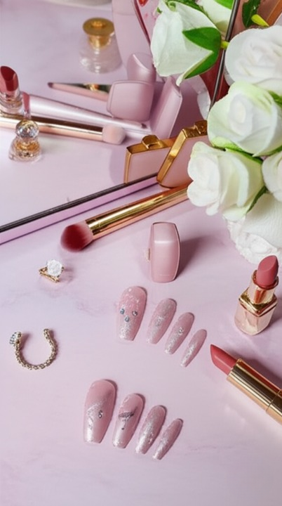 Bring salon-quality nails right to your fingertips with this Luxury Pink Nail Tips Set (12 PCS) Designed with a glamorous soft pink base, sparkling glitter accents, and dazzling rhinestone embellishments**, these nails offer the perfect blend of elegance and style. Whether you’re preparing for a wedding, party, date night, or just want to elevate your everyday look, these press-on nails are a quick and stylish solution.