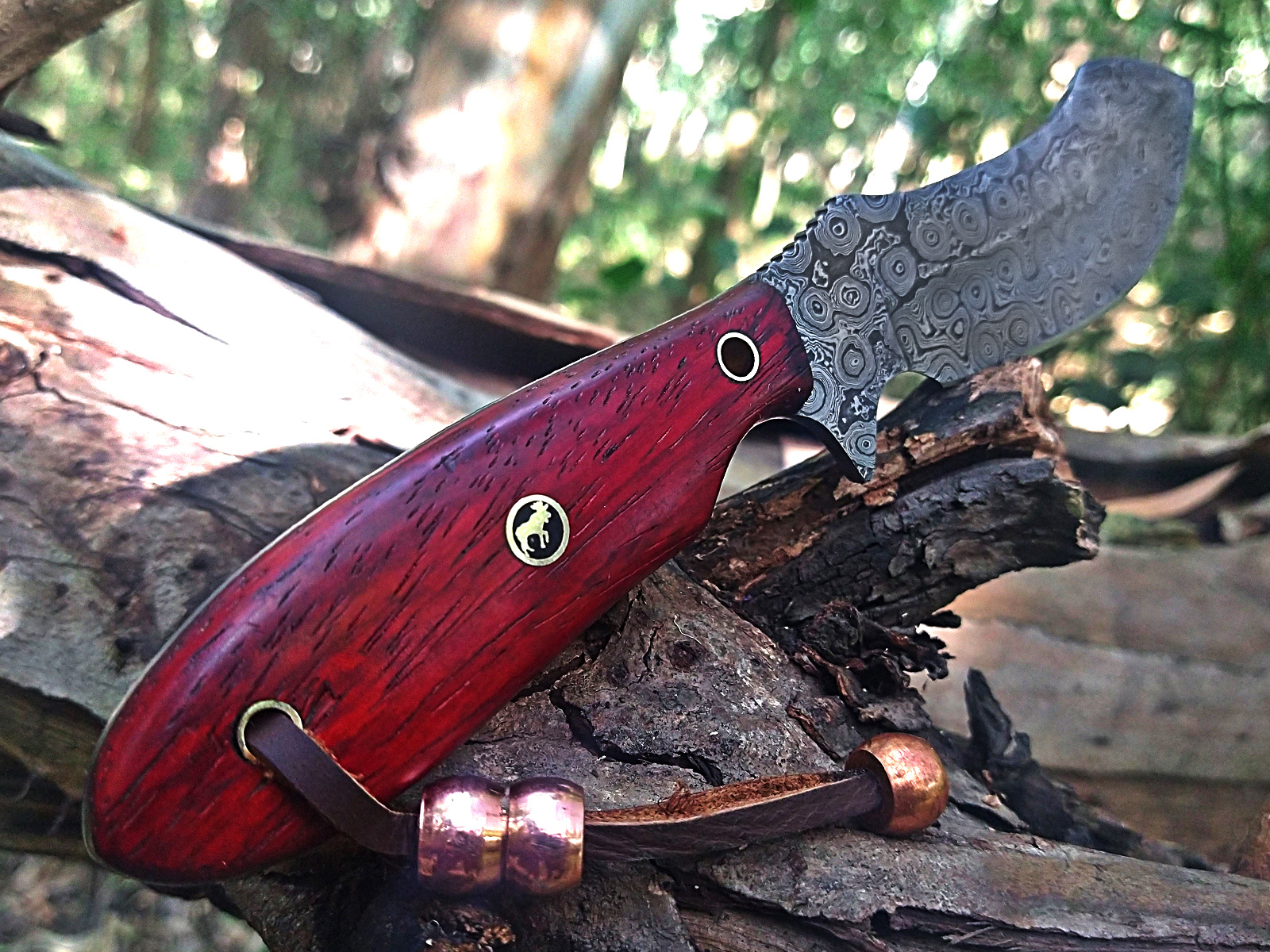 The knife features a beautifully polished natural wood handle, providing a comfortable grip and a touch of elegance. It also comes with a sturdy leather sheath for secure storage and easy portability, making it an ideal companion for camping, hunting, or everyday use.