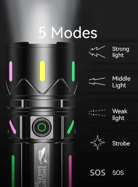 Lighting Modes: Multiple (High, Medium, Low, Strobe, SOS)